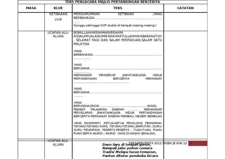 Interested in flipbooks about teks ucapan aluan mtq. 5 KOLEKSI PANTUN PERSEMBAHAN SELINGAN MAJLIS. Justeru Pertandingan Cerita Bahasa Melayu Sekolah Rendah Kategori Tahap 1 2 wajar dijadikan aktiviti pertandingan di peringkat sekolah daerah negeri dan kebangsaan.